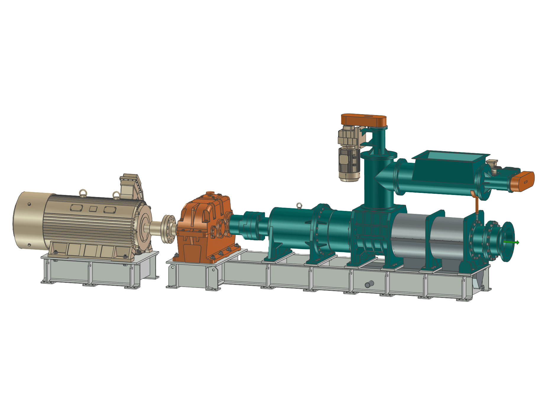 單螺旋撕裂機(jī)主要由進(jìn)料口、螺旋軸、刀片、出料口等部分組成,其工作原理是通過(guò)大壓縮比的螺旋軸旋轉(zhuǎn)帶動(dòng)刀片對(duì)物料進(jìn)行撕裂和破碎,在軸向推力作用下,物料沿著螺旋軸的方向逐漸向出料口移動(dòng),逐漸增加的壓縮比對(duì)物料產(chǎn)生剪切、撕裂和擠壓等作用力。經(jīng)過(guò)撕裂和破碎后的物料,尺寸變小,能夠通過(guò)刀片與機(jī)筒之間的間隙,推到出料口排出。